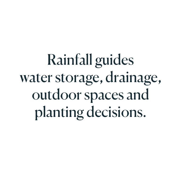 This is essential when you’re on water tanks, like we are. It helps you calculate how many tanks you’ll need, depending on your roof area and your household consumption, number of people. It will also inform your outdoor design needs and connection to the indoors.